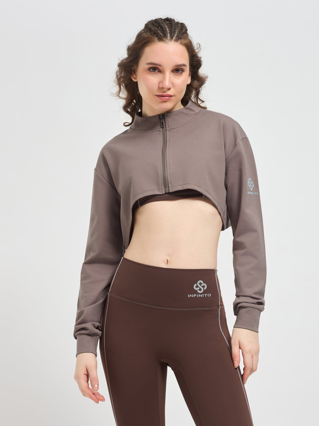Women’s Cropped Zip-Up Jacket – Soft Stretch Activewear for Gym & Athleisure