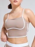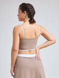 Together, the skirt and bra form a luxe, coordinated set that transitions effortlessly from studio to street. The mocha mousse tone and contrast edge detailing add a refined, modern touch—perfect for women who value both performance and aesthetic appeal.