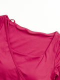 Irregular asymmetrical neckline with a stylish side-shoulder cut-out. Built-in molded cups for shaping and lift. Available in Cream Ivory, Mocha Taupe, and Wild Berry Red.