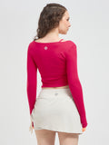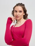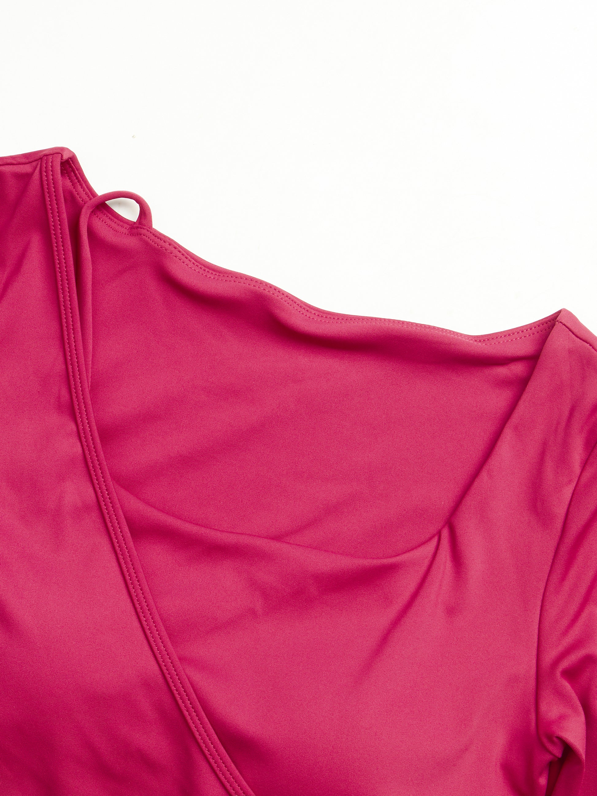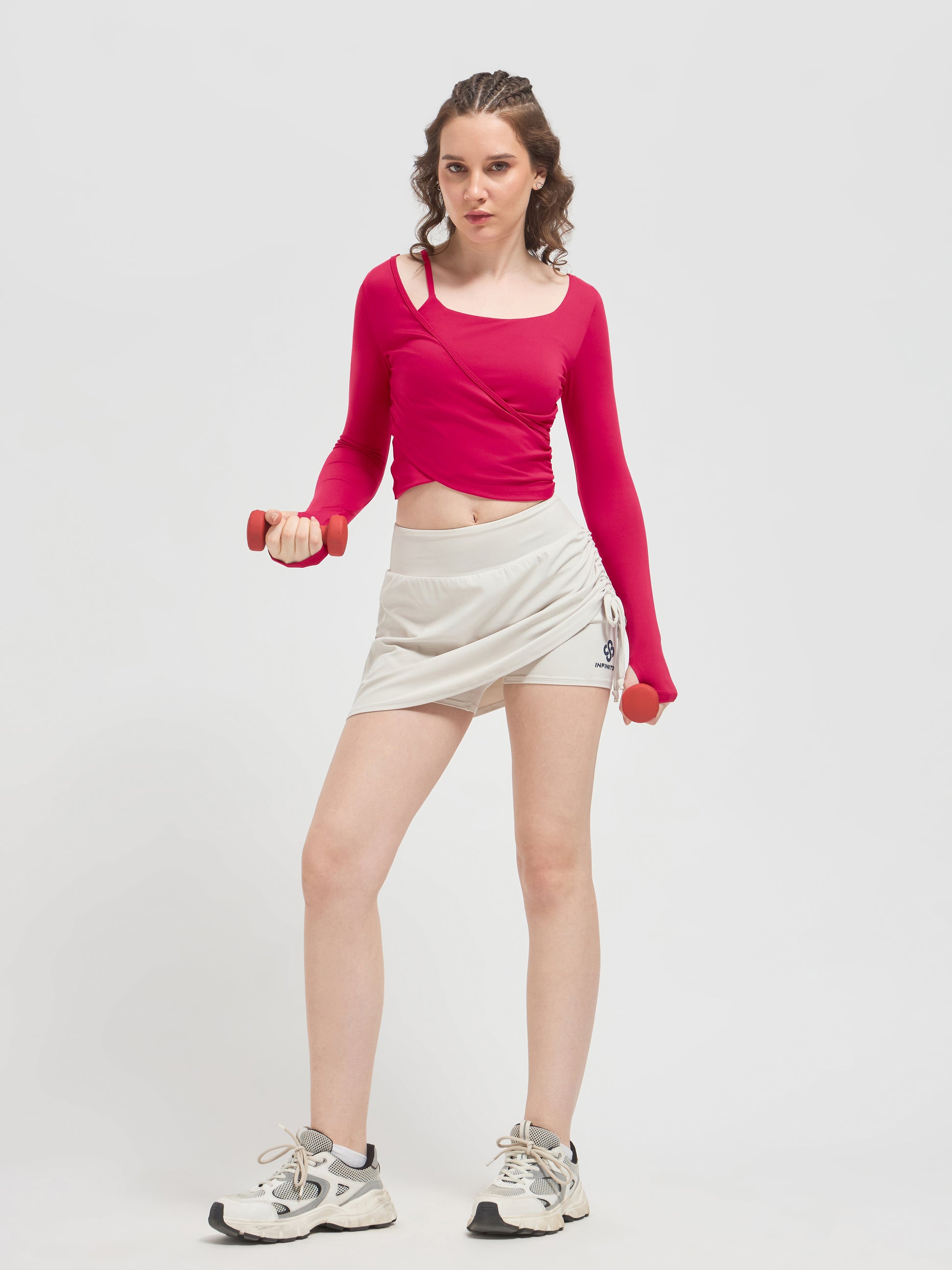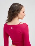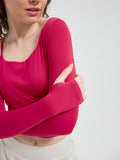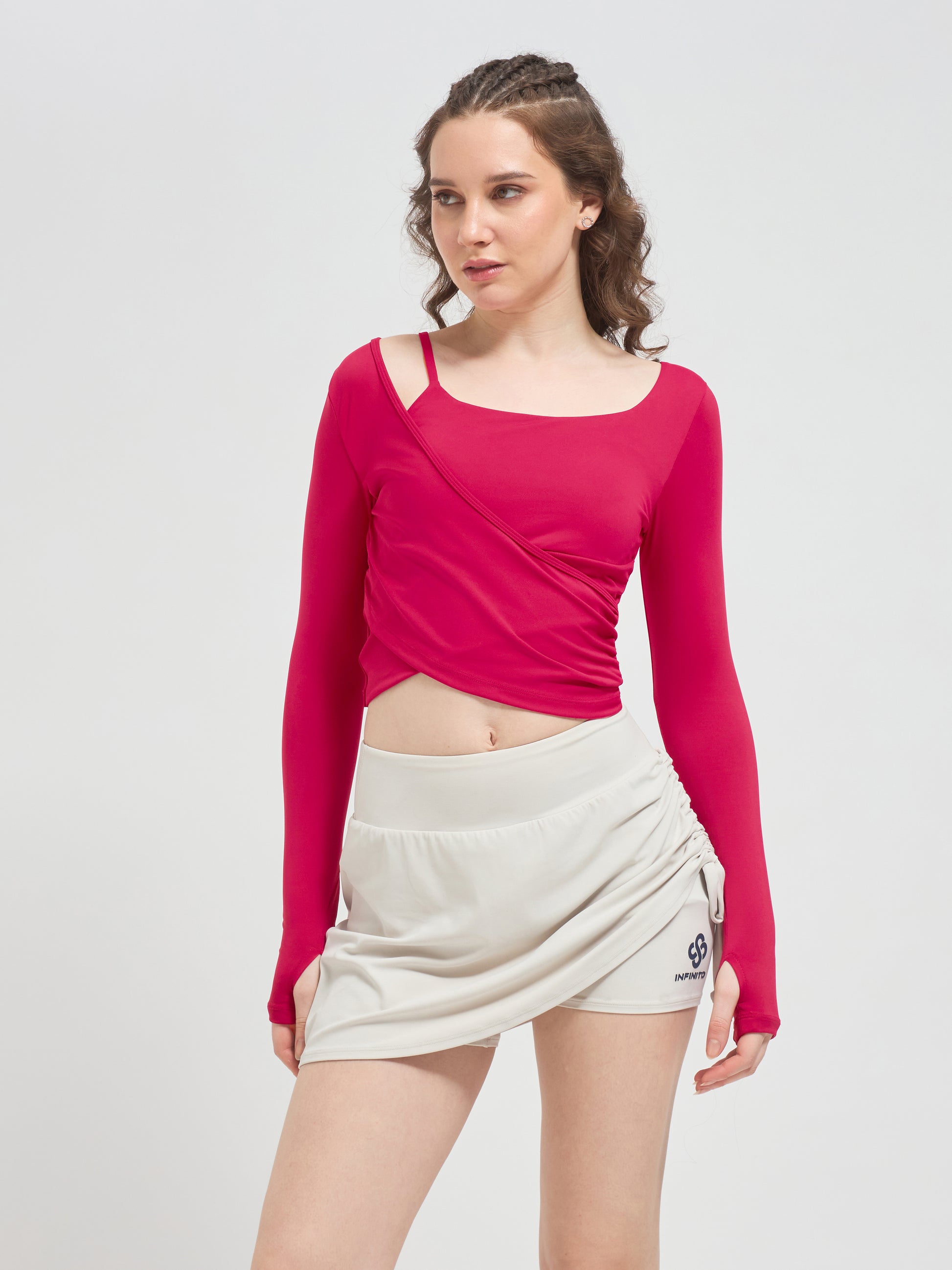 Designed with long sleeves and integrated thumbholes, this luxury fitness wear essential offers sleek coverage and a streamlined silhouette. Whether you’re flowing through yoga, training in Pilates, or styling it for luxury athleisure wear, this cropped wrap top transitions seamlessly from workout to lifestyle.