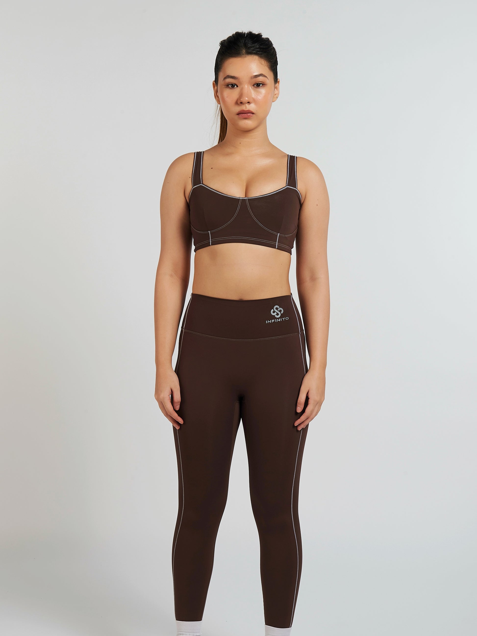 - High-waist fit designed for both yoga and gym outfits with luxury finish.