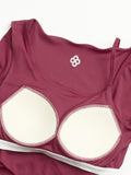 Featuring an elegant asymmetrical neckline and a modern side-shoulder cut-out, this piece blends high-end gym fashion with functional performance. The built-in molded pads provide secure shaping and gentle lift with shock-absorbing comfort, so you can move confidently without constant adjustment.