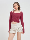Irregular neckline + shoulder cut-out combine elegance with bold, contemporary style.