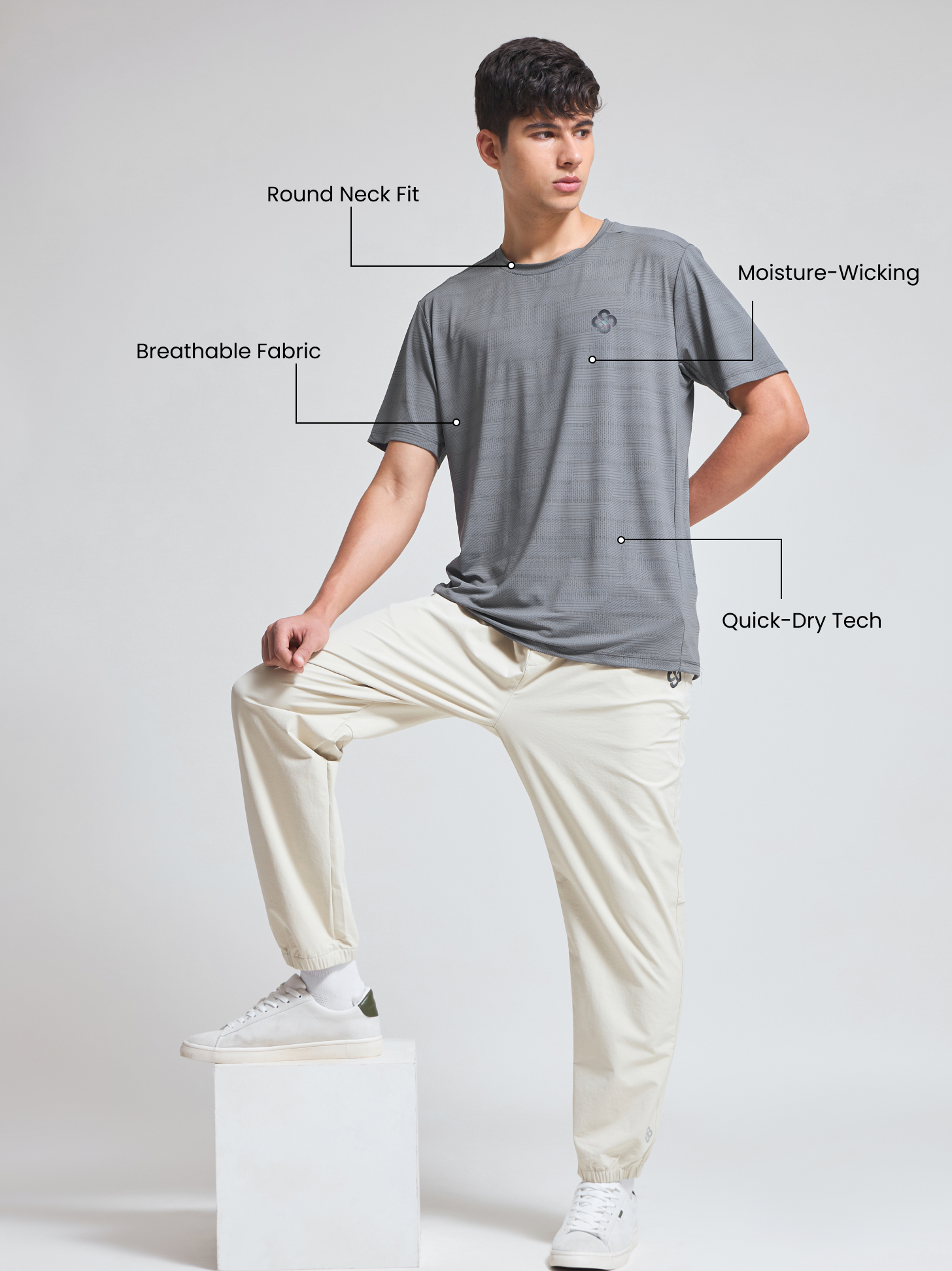 Engineered for the urban athlete and built to beat Indian summers, the SweatShield workout tee for men is made with an ultra-light nylon blend that’s sweat-wicking, fast-drying, and smooth on the skin. The moisture-control tech pulls sweat away from your body, speeding up evaporation and leaving you feeling dry within minutes. Whether you're training indoors or outdoors, this quick dry t-shirt for men adapts to your pace — no cling, no stink, no distractions.