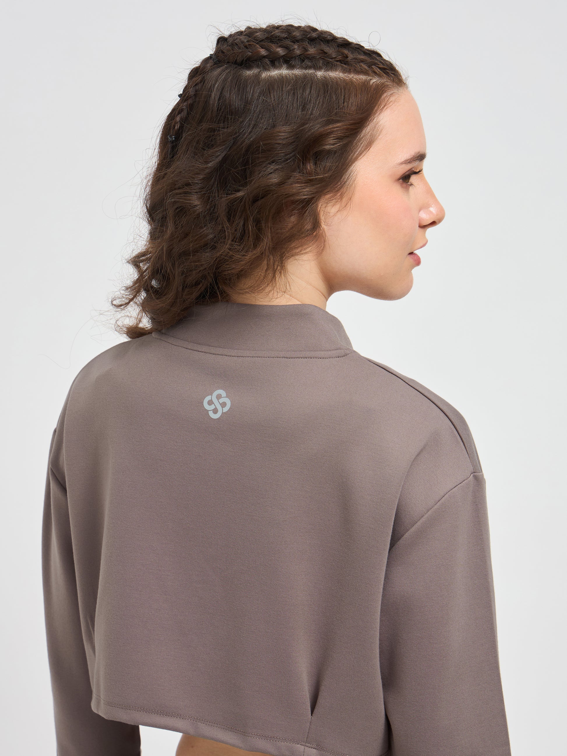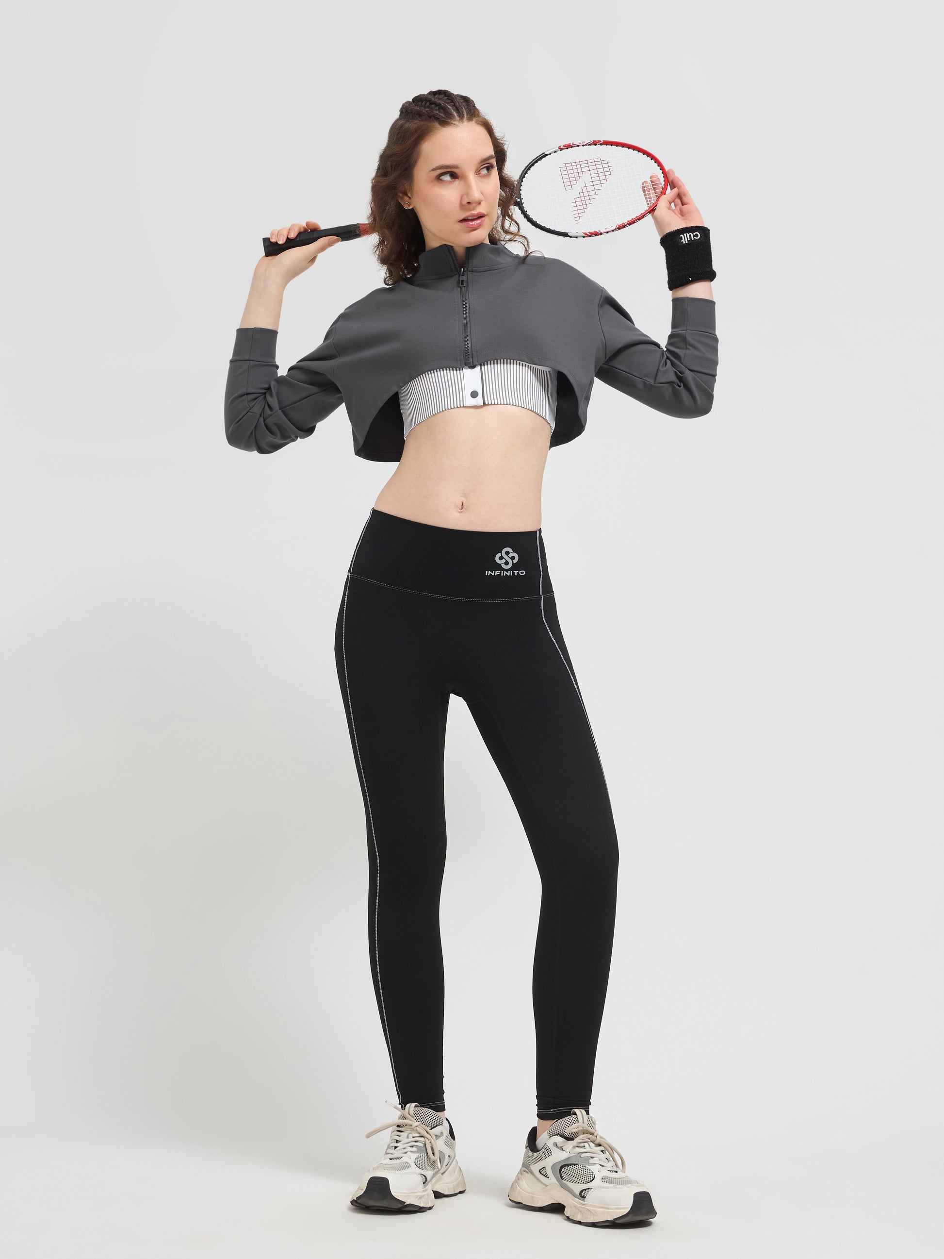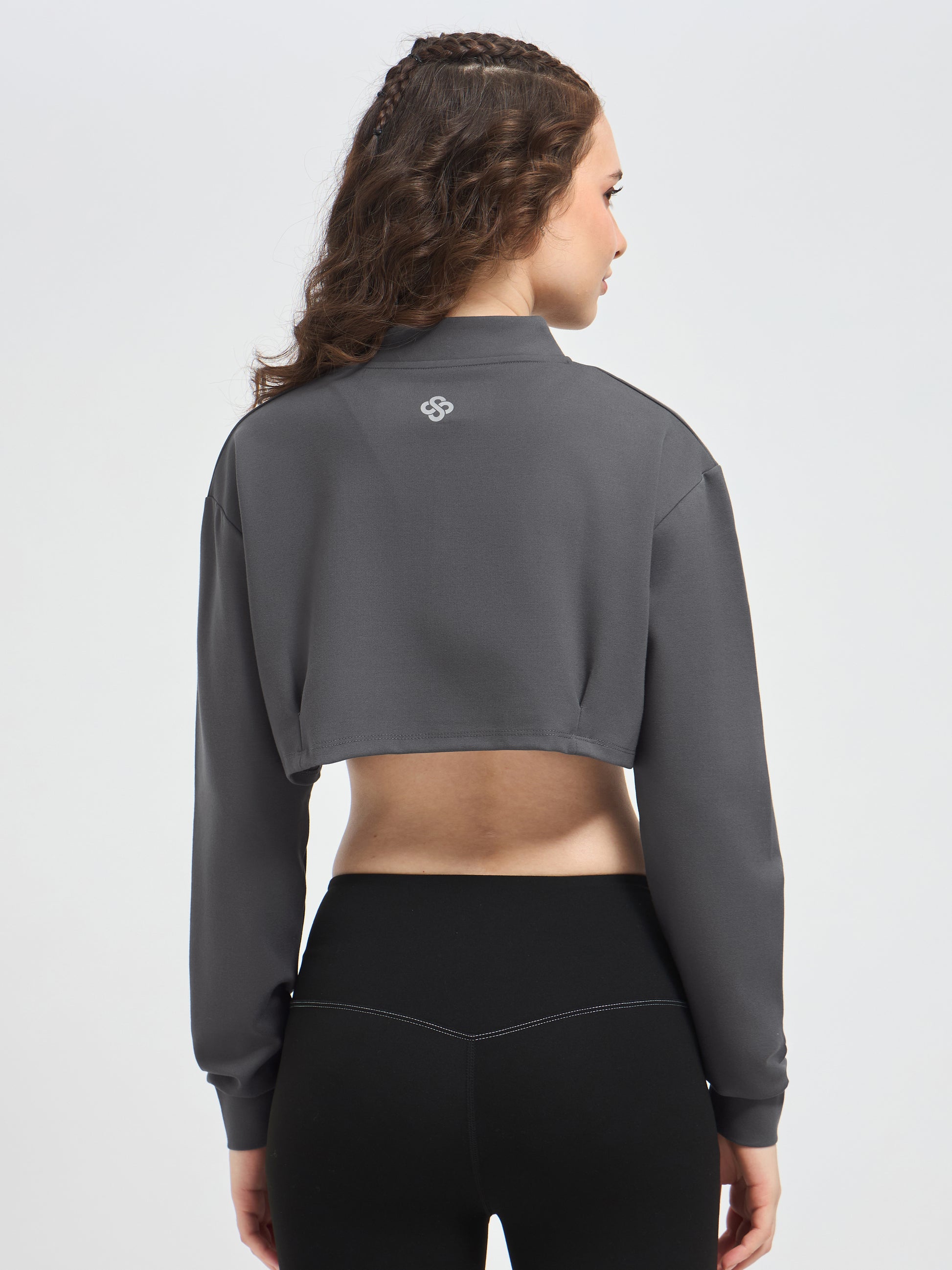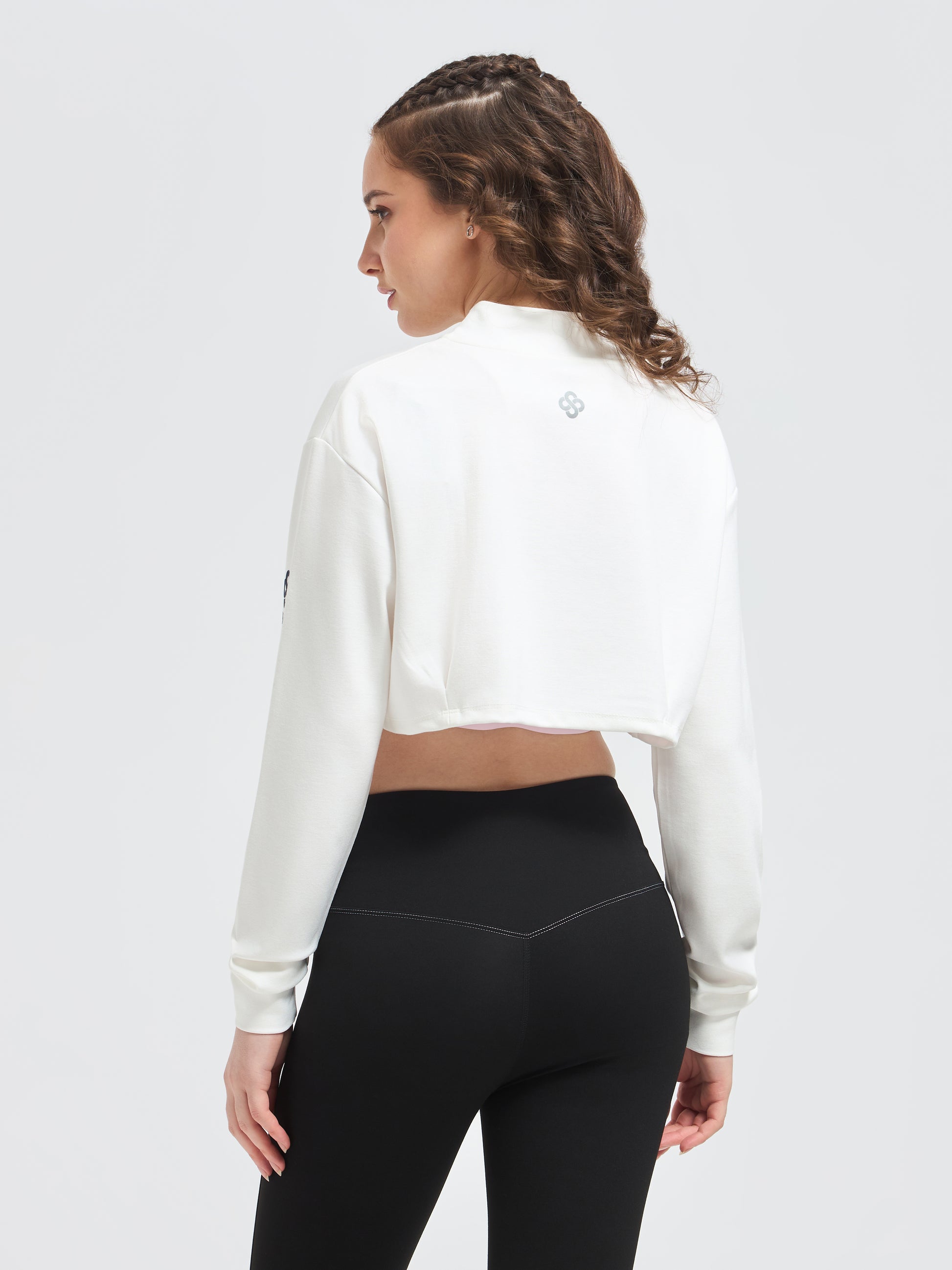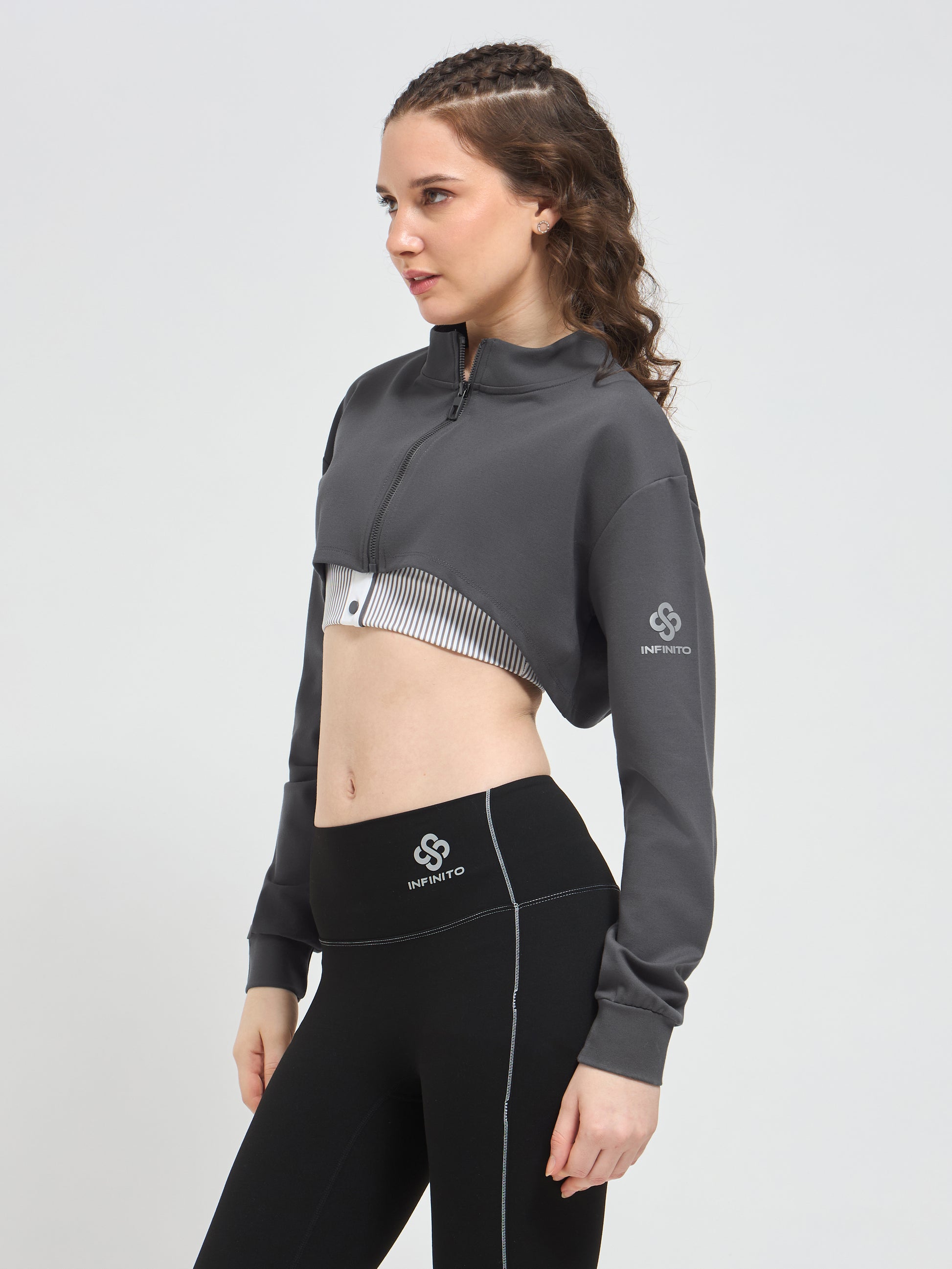 The cropped silhouette flatters the waist and pairs seamlessly with premium workout clothes for women and high-waisted leggings. Designed for warm-ups, yoga, Pilates, and studio sessions, it allows full freedom of movement without restriction.