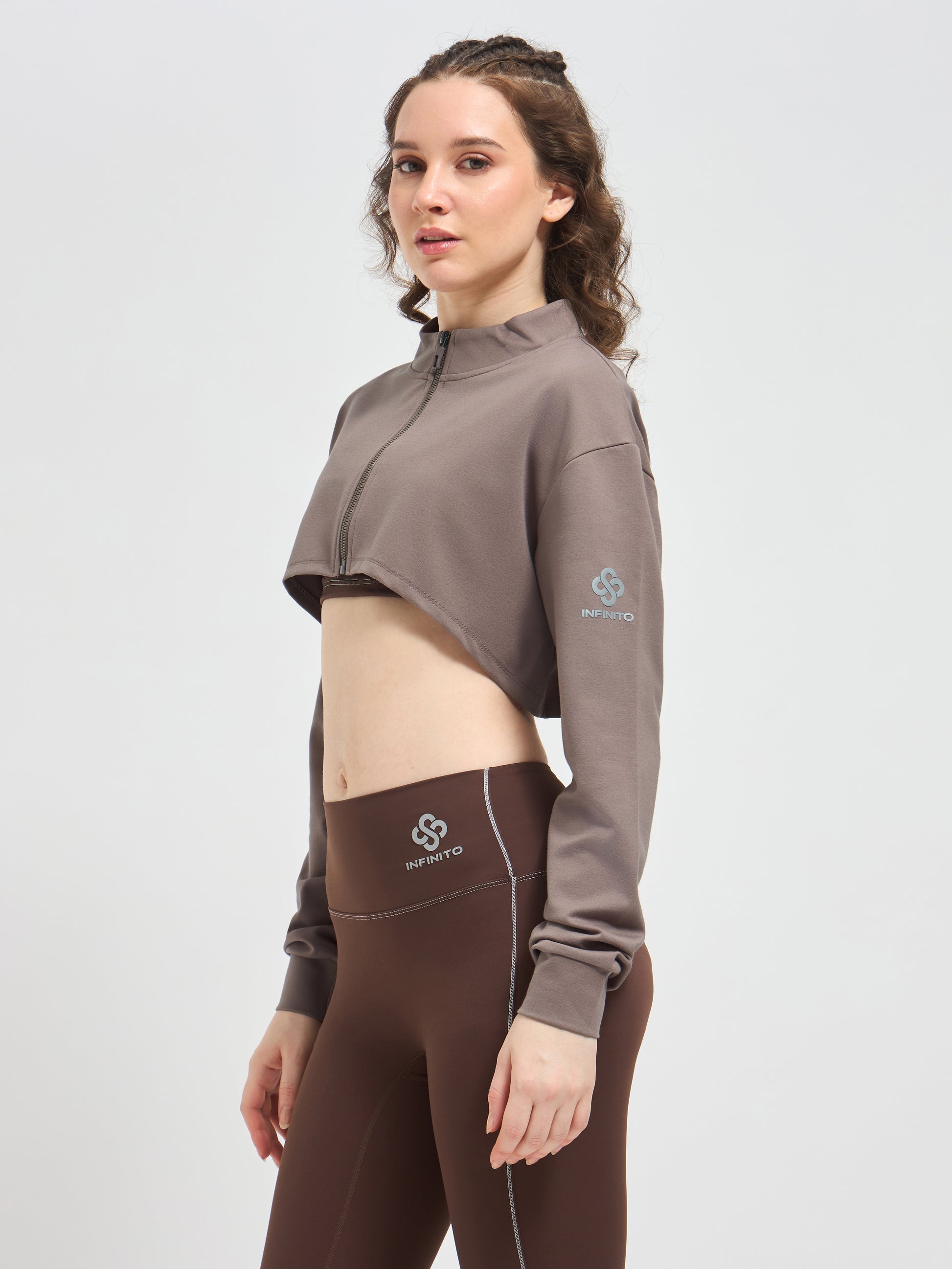 Women’s Cropped Zip-Up Jacket – Soft Stretch Activewear for Gym & Athleisure